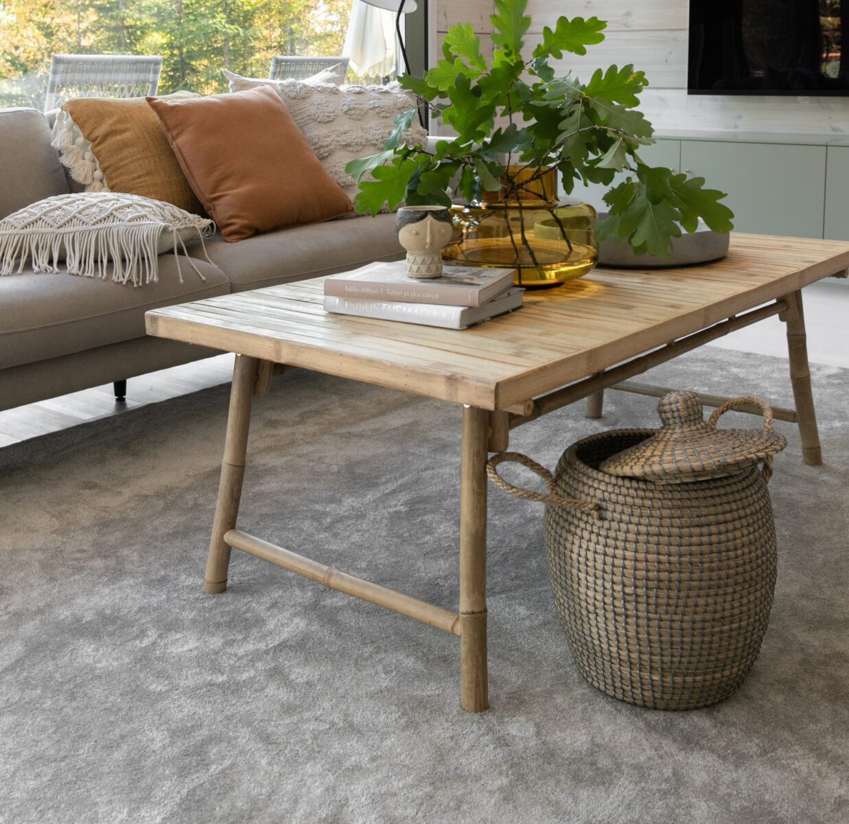 Materiaalien valinnassa suosittelemme harkitsemaan villaa, joka on luonnostaan kestävä ja likaa hylkivä materiaali. Villa soveltuu hyvin olohuoneeseen, mutta myös muihin kodin tiloihin.