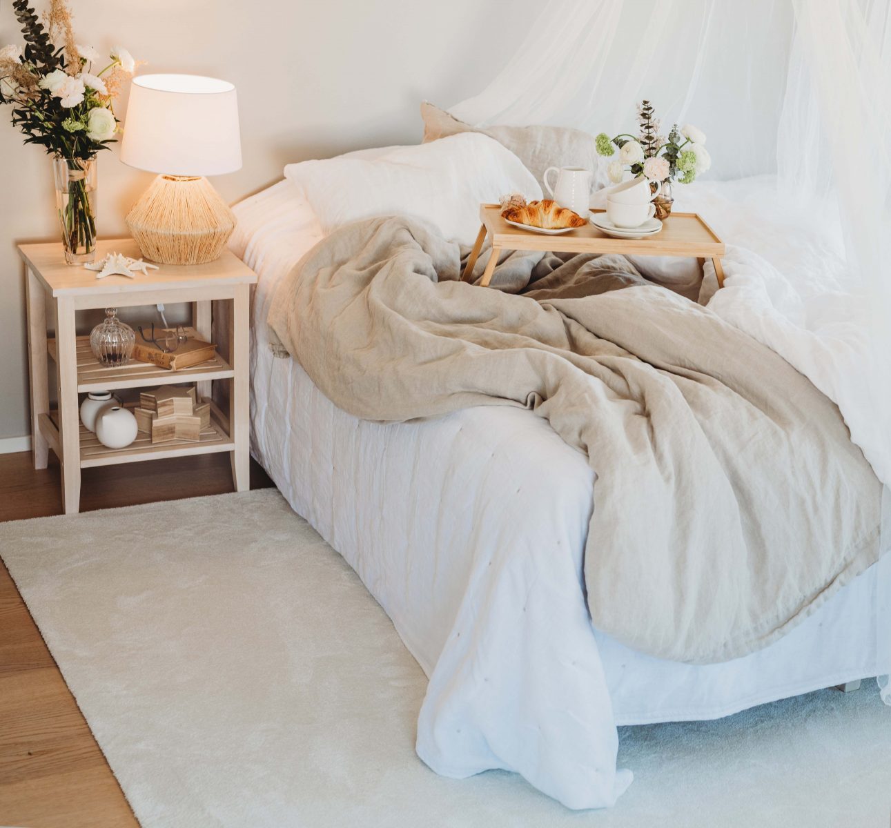 Makuuhuoneessa kannattaa valita riittävän suuri matto, joka ulottuu sängyn alle ja sen sivuille. Näin jalkasi kohtaavat miellyttävän maton aamuisin ja matto näyttää tilassa sopusuhtaiselta.