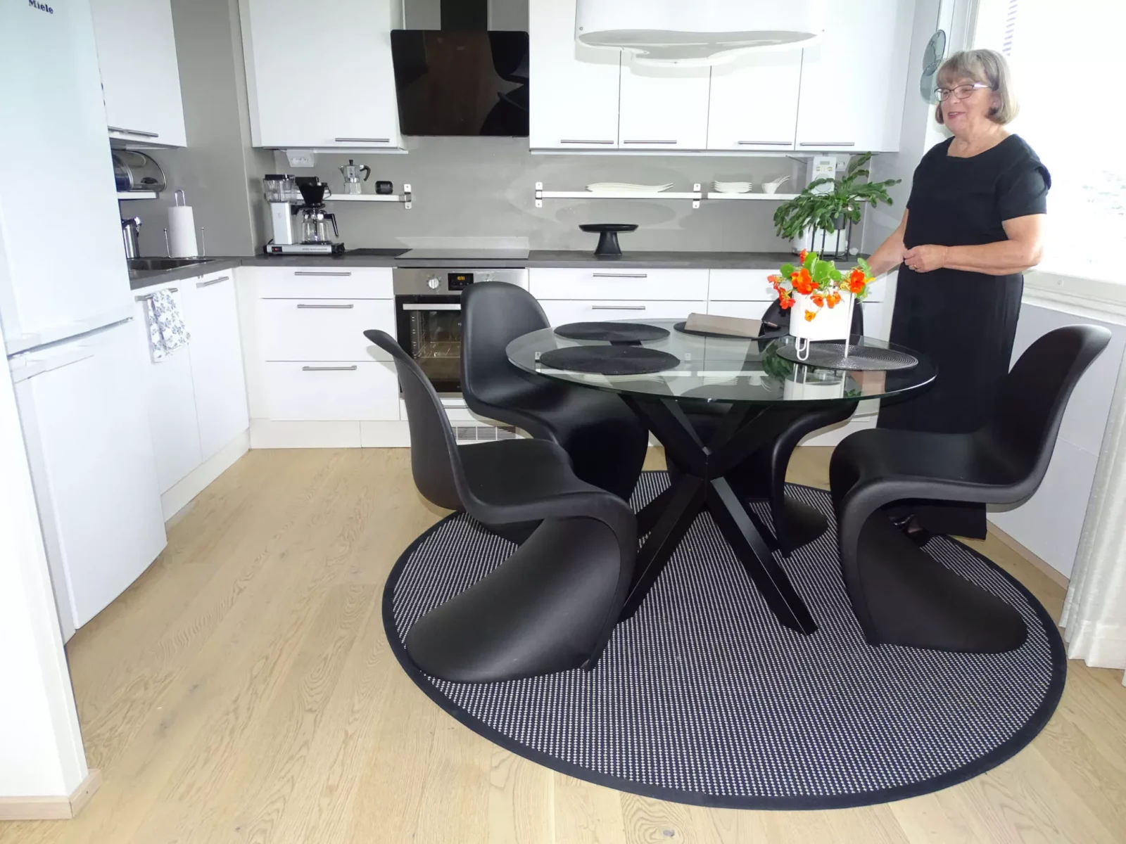 Laila etsi uuden kodin keittiöön pyöreää mattoa uuden, pyöreän pöydän pariksi. Ne tuntuivat oikeilta ratkaisuilta pienempään tilaan.