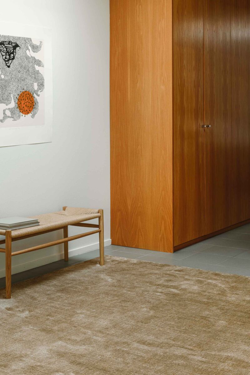 Den smala, stilrena bandkanten ger mattan ett elegant och välgjort avslut. På undersidan finns halkfri EVAPOLYTEX®, som håller mattan snyggt på plats och ger den stadga. Baksidematerialet är luktfritt, återvinningsbart och lämnar inga avtryck på golvet. Det passar alla golvtyper – även rum med golvvärme.